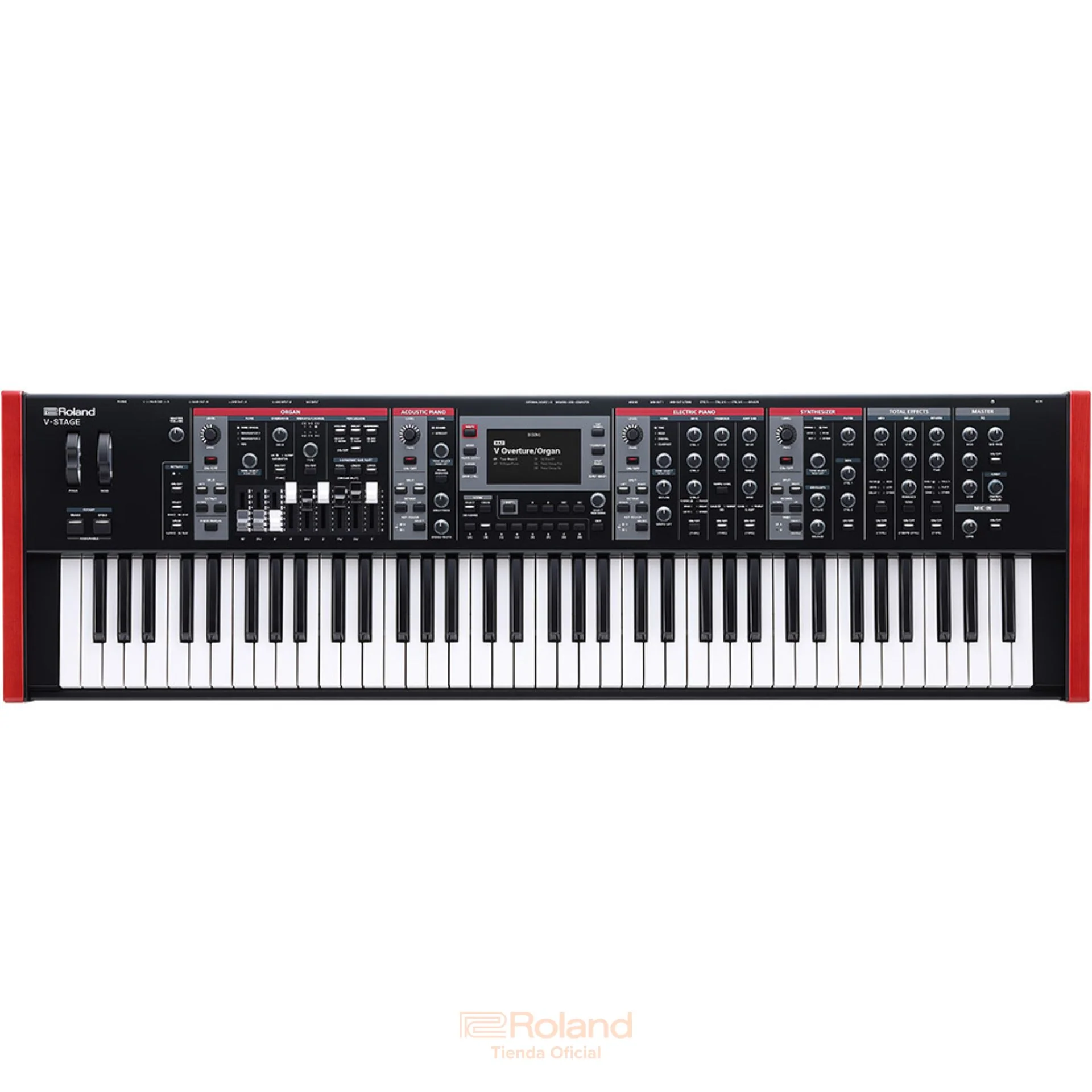 El V-STAGE 76 tiene un nuevo teclado semicontrapesado de 76 notas con detección de velocidad superior y sensaciones de cascada para usar técnicas clásicas de órgano, como glissandos y rakes.