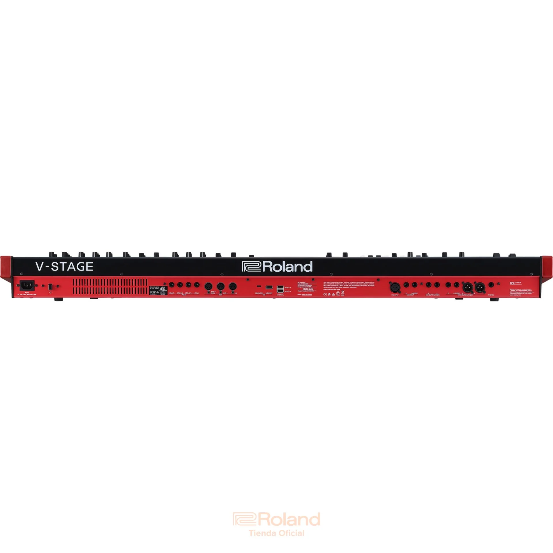 - Entrada de micrófono XLR con control de volumen de panel, reverb y MFX específicos, y un vocoder clásico. Entradas de línea estéreo para fuentes externas.